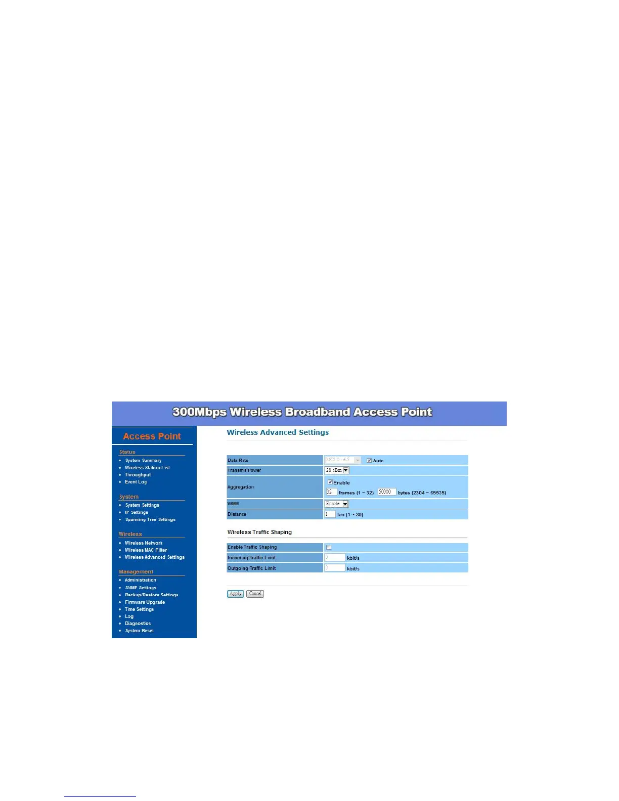 Wireless Traffic Shaping – Choose to enable or disable wireless traffic