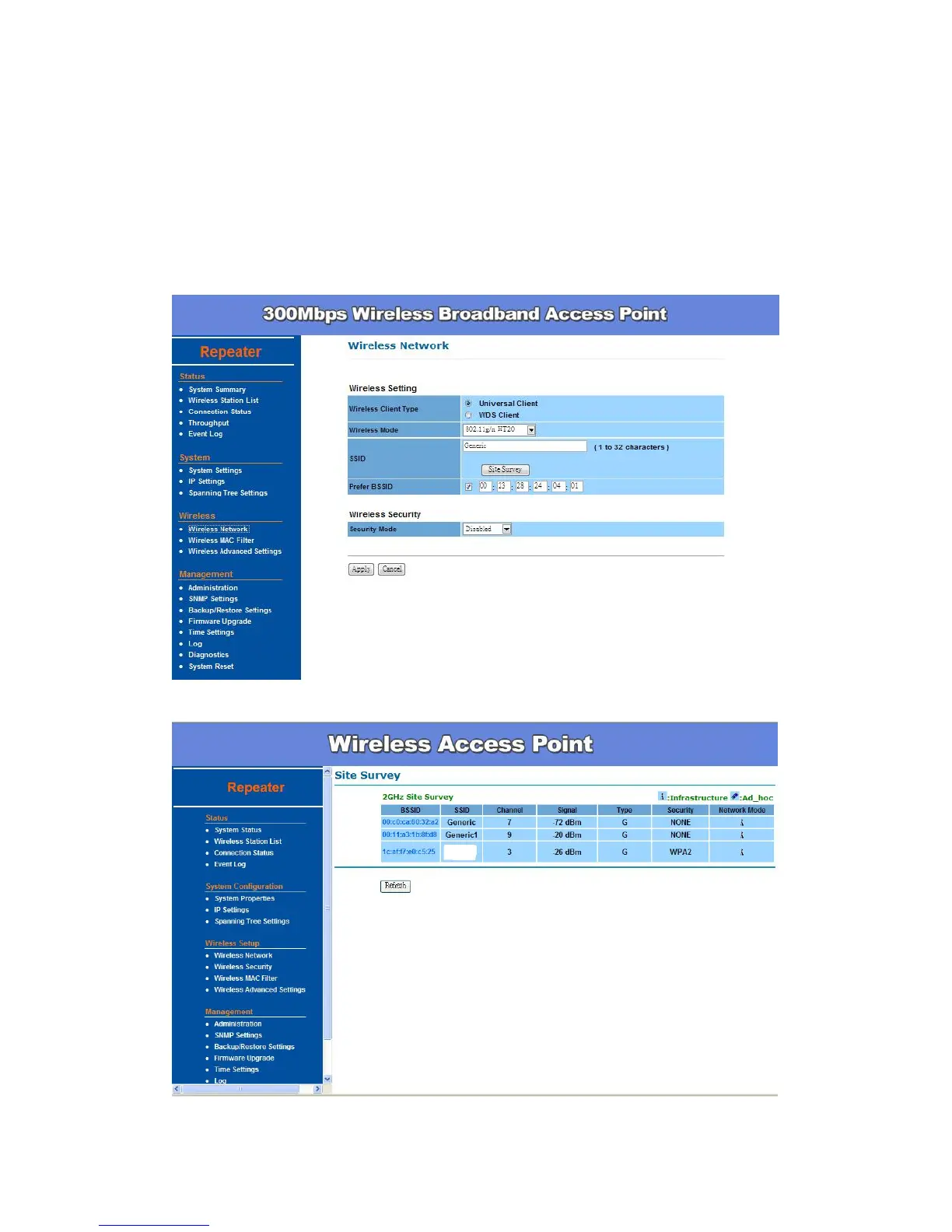 After enable the repeater mode, you can click Wireless Network and choose