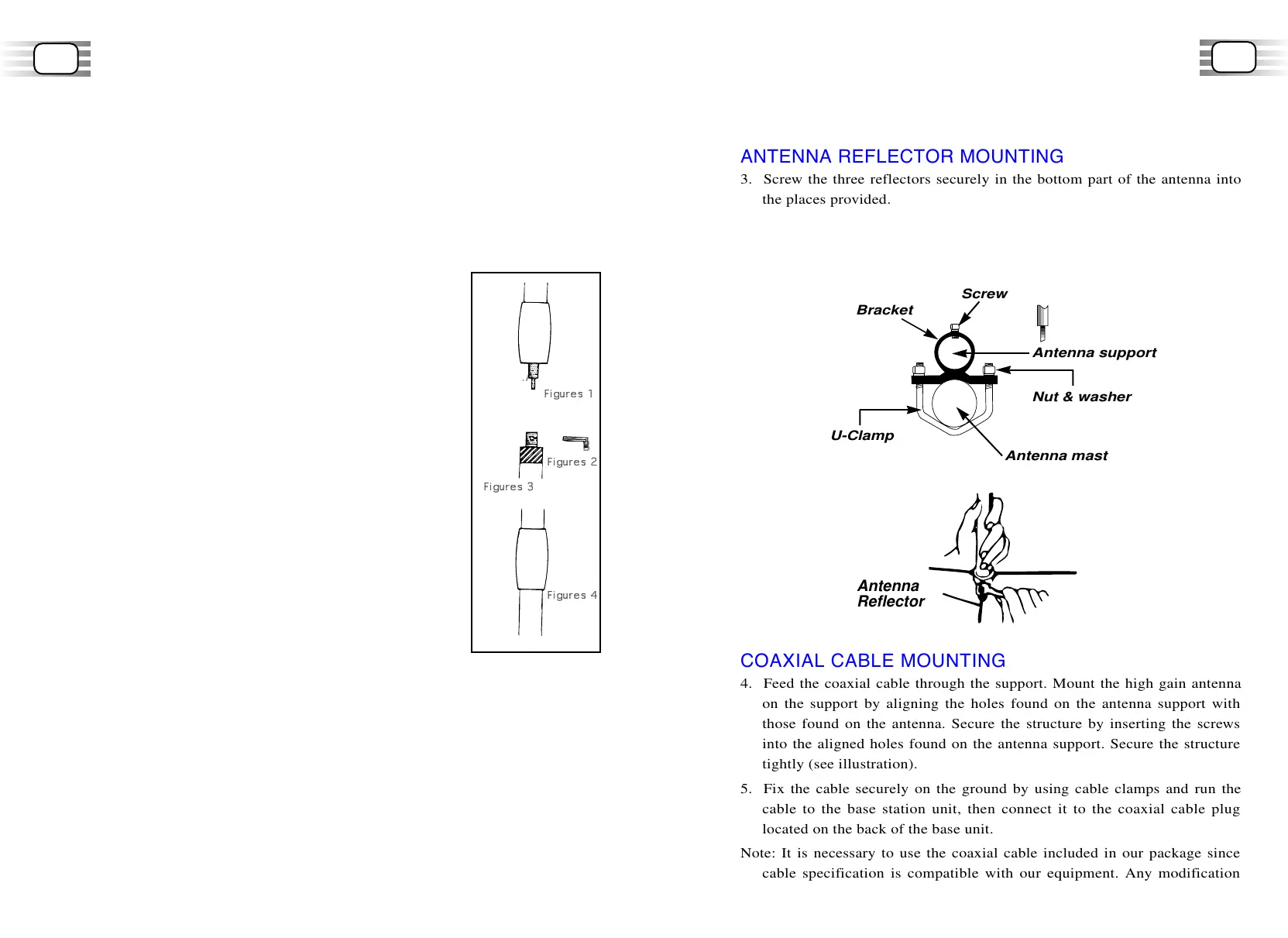 1. Mount the antenna support, using the U-Clamps