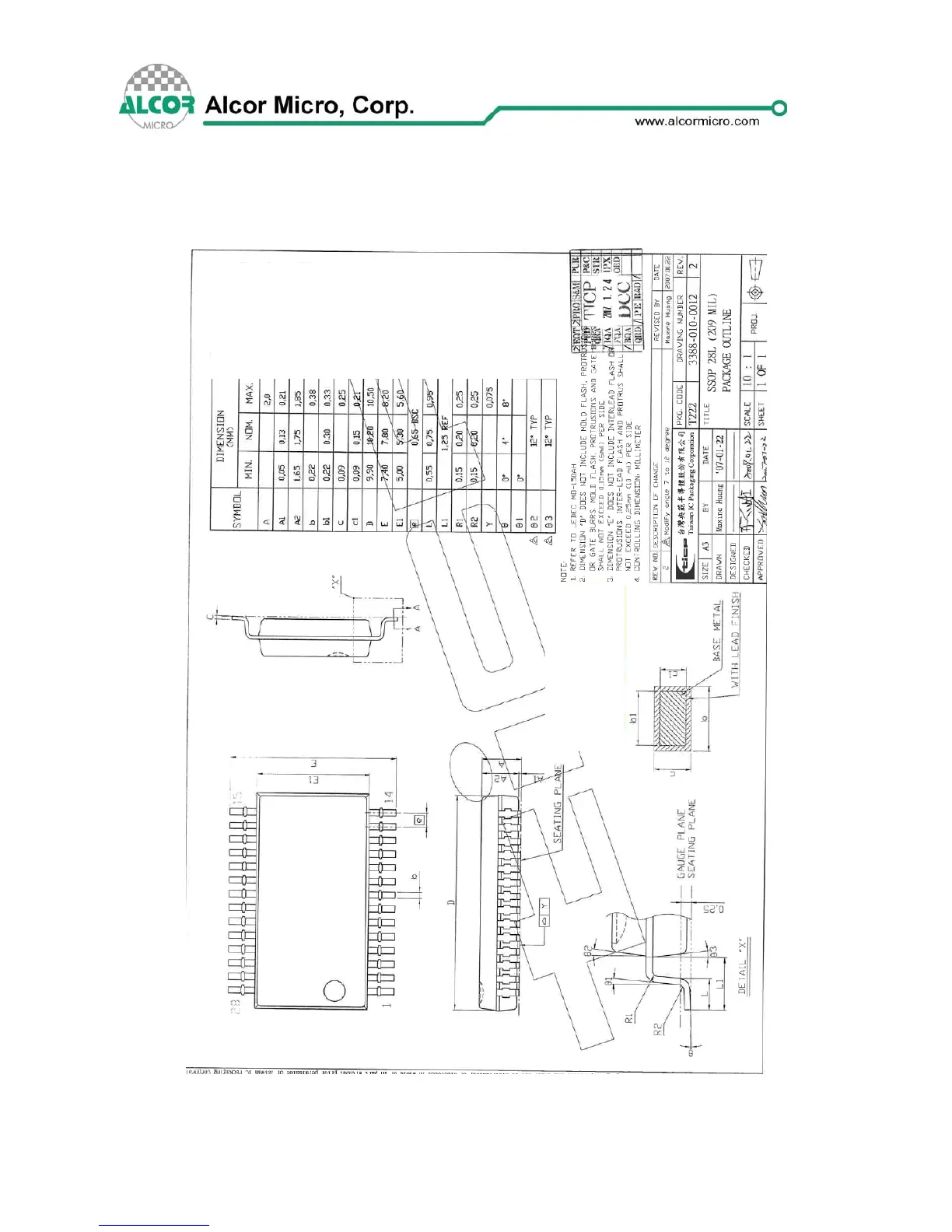 Alcor Micro AU9540 - AU9540 Mechanical Information and Package