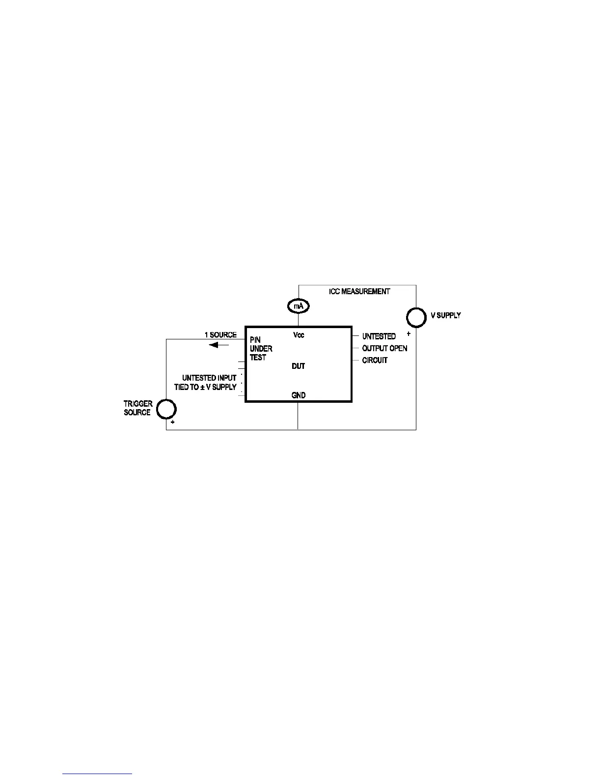 (DUT=00mA, Icc=100mA), then the voltage was increased by 0.1Volts and the pin was tested