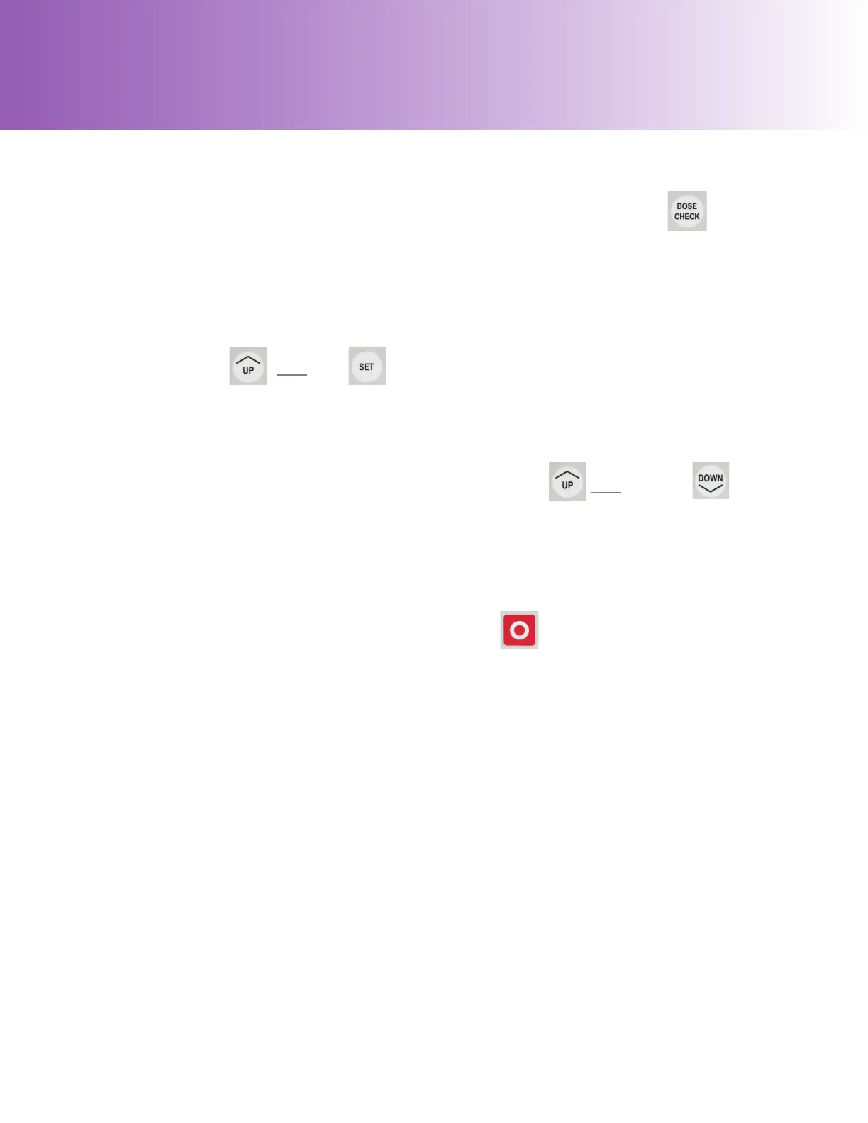 • To view the total accumulated volume delivered, press DOSE CHECK