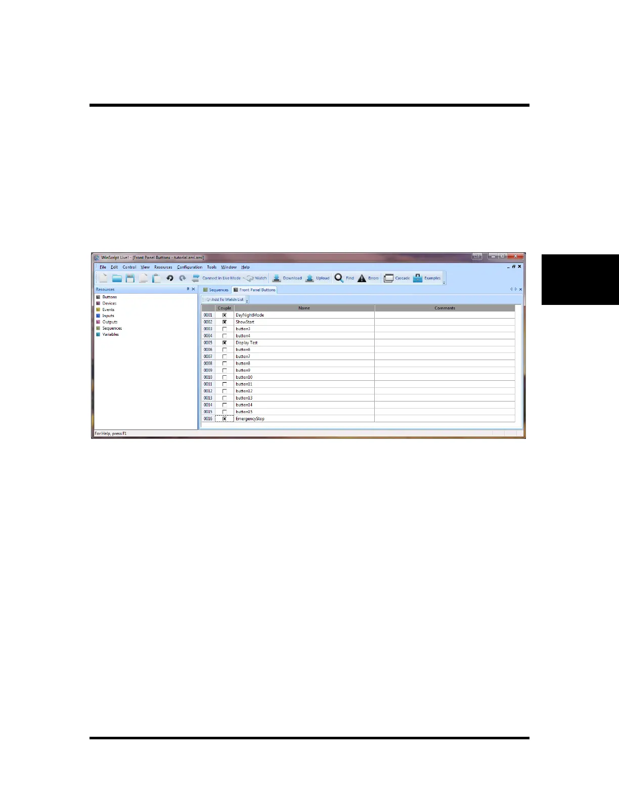 replacement. WinScript Live gives the programmer control to program the front panel buttons as needed.