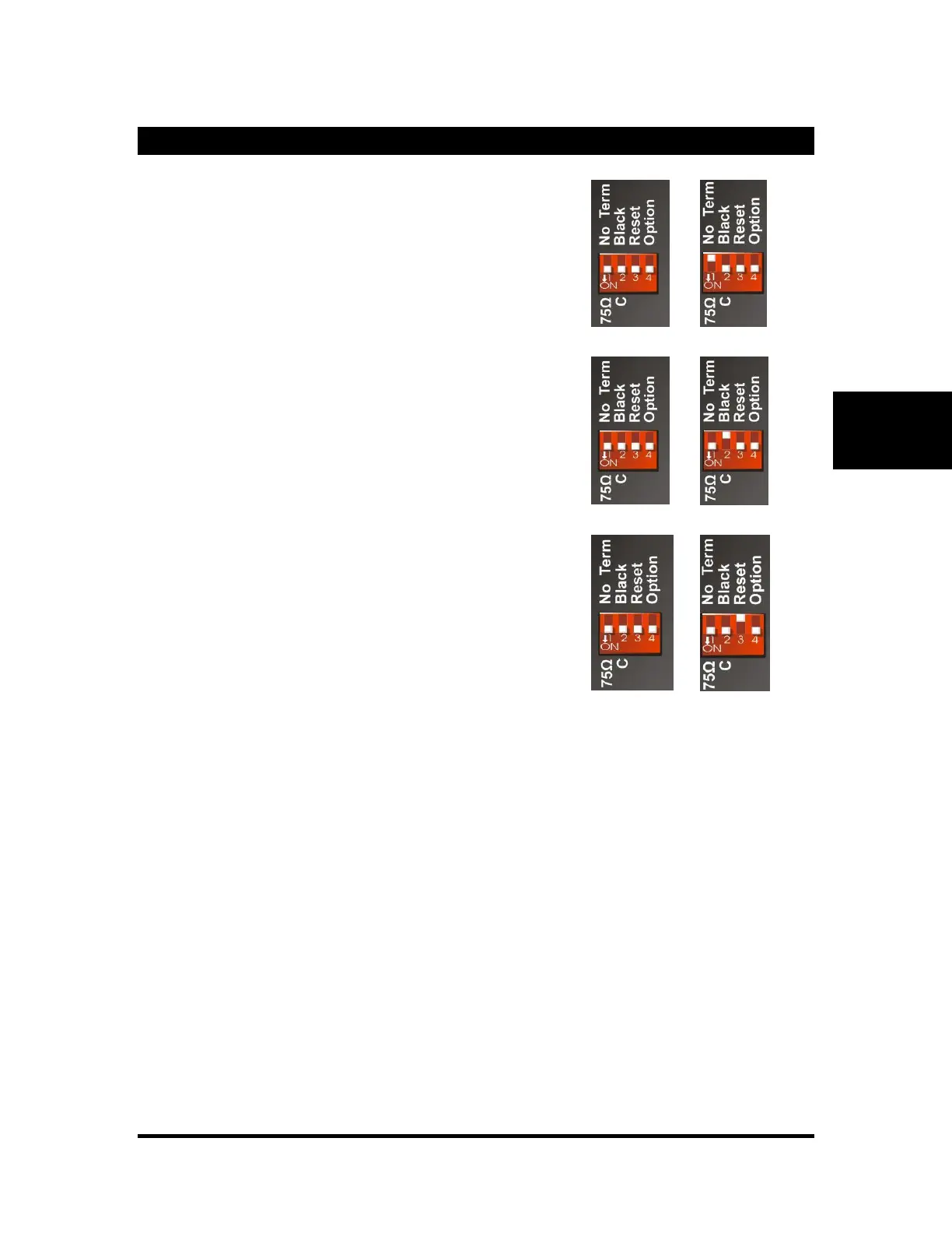 The first switch is used to terminate the sync input connector. Down
