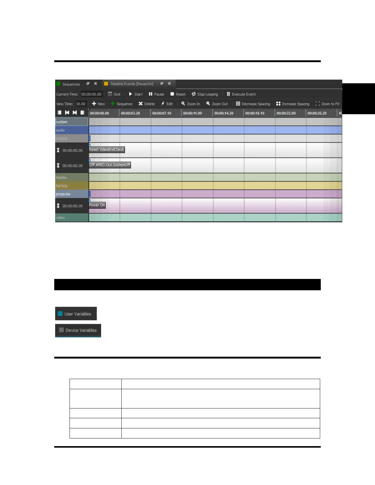 A sequence can be viewed as either a Timeline or a Grid view. The Timeline View is shown below.