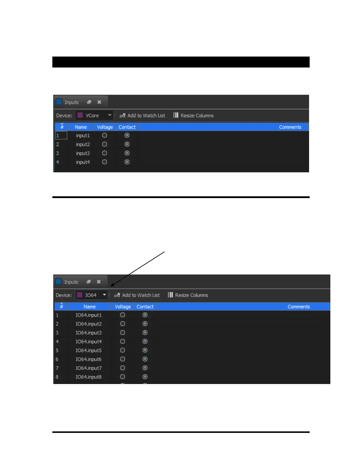 To view a specific device's input, select the device from the drop down list at the top of the "inputs"