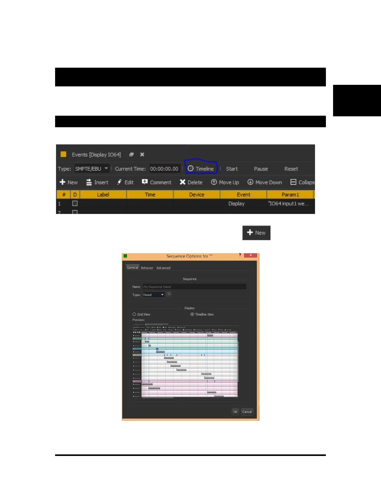 Timeline allows for the intuitive editing of sequence events. Elements are displayed in the order they