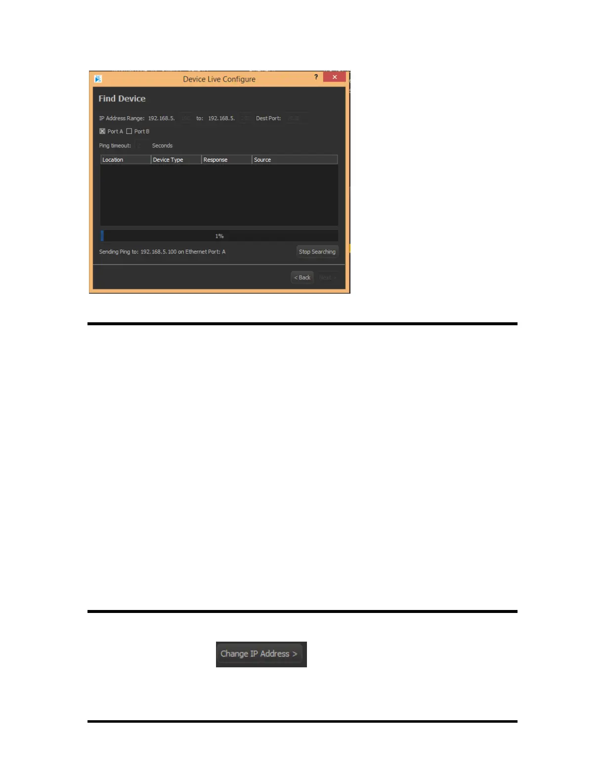 select the “Change IP Address” option within the “Find Device” dialog