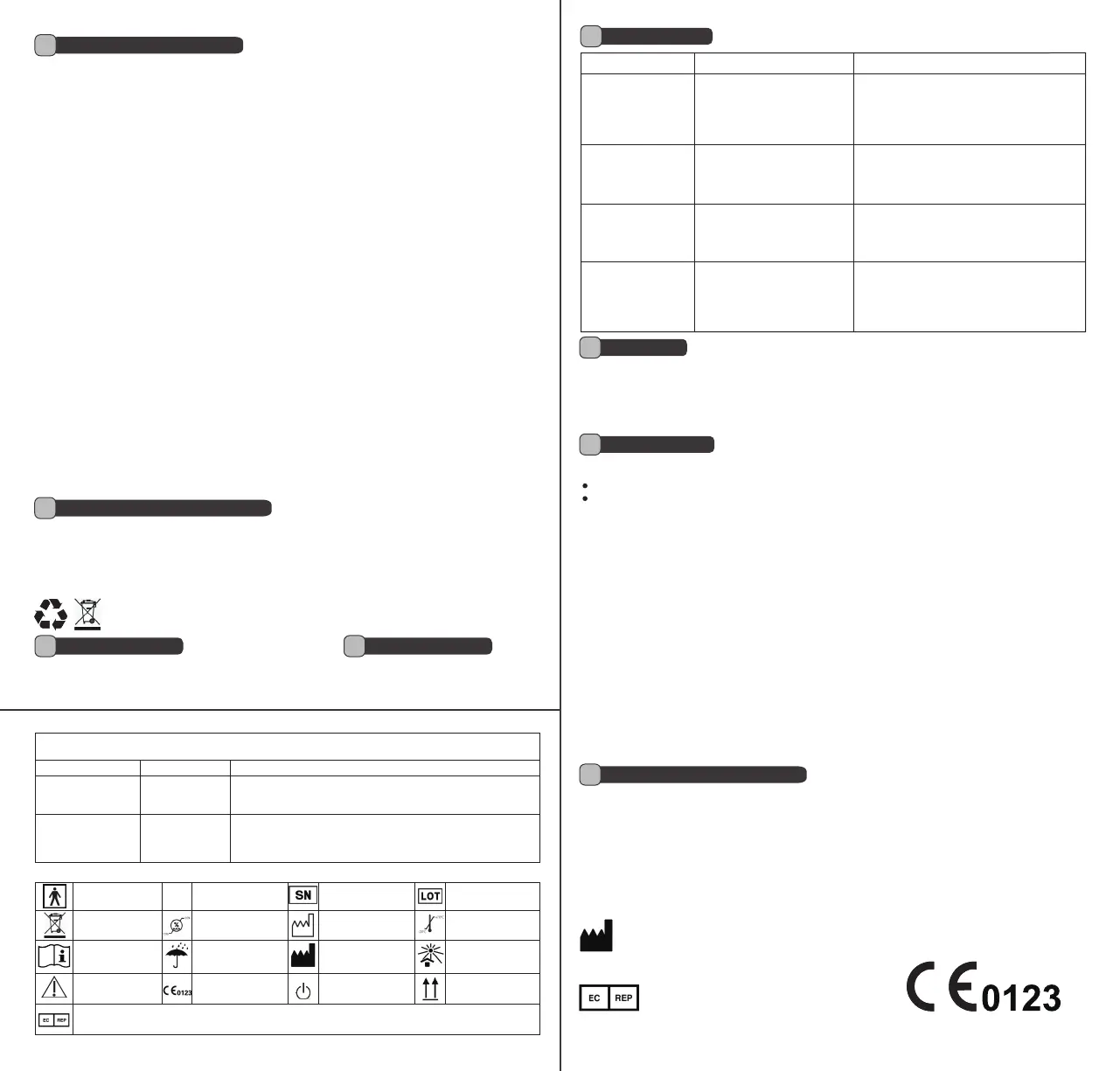 9. Do not autoclave, use ethylene oxide for sterilizing or immersing the Oximeter in liquid.