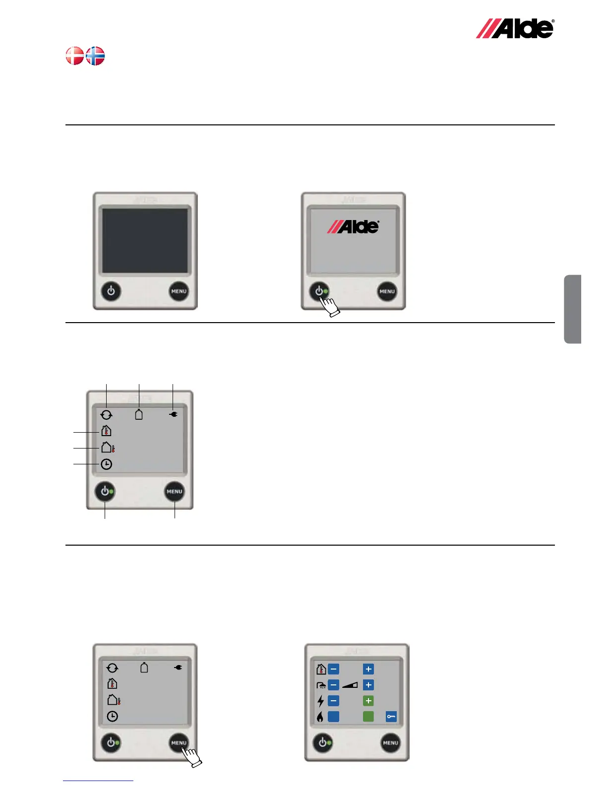 2. Betjeningspanel i innstillingsmeny.1. Betjeningspanel i hvilemodus.