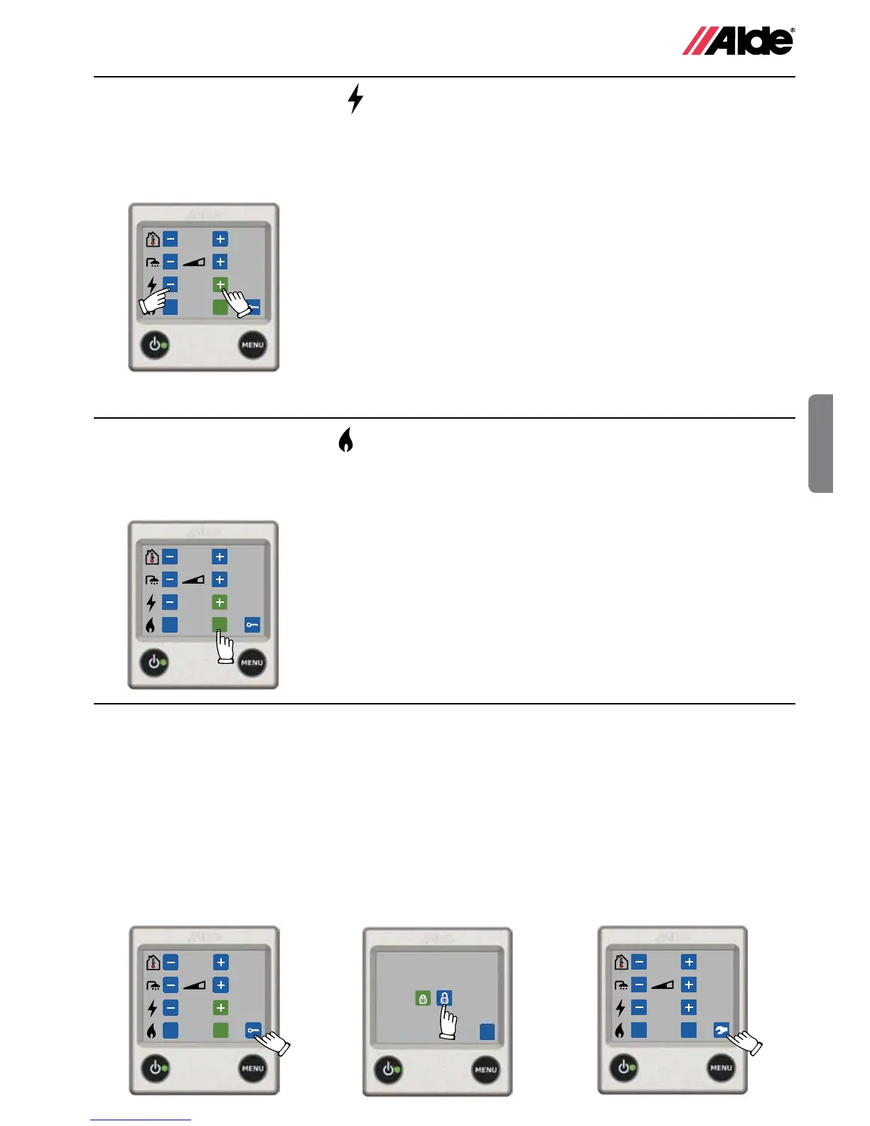Slik/således aktiverer du oppvarming med strøm: Jo høyere effekt du velger, desto raskere går oppvarmingen.