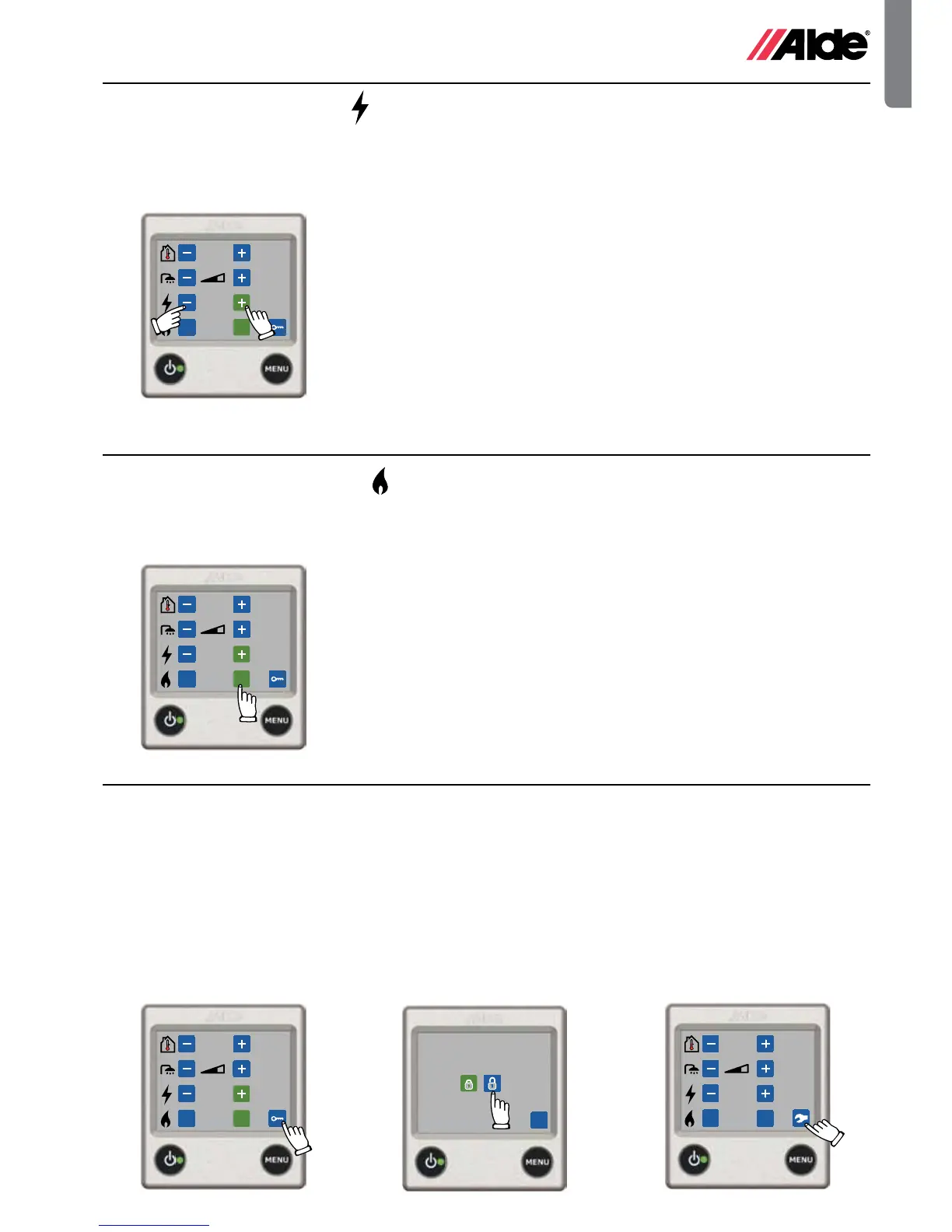 Gör på följande sätt för att aktivera uppvärmning med el. Ju högre effekt du väljer desto snabbare blir uppvärmningen.