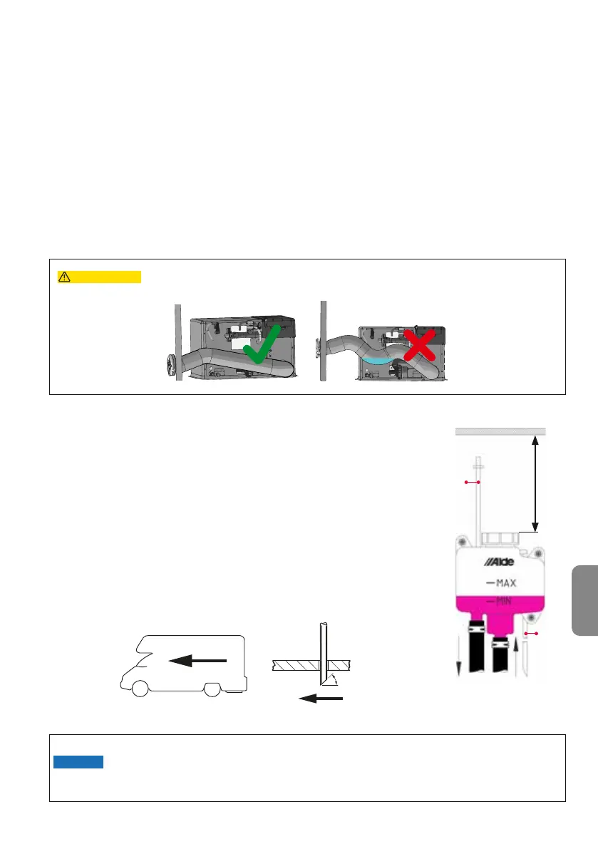Controllare il percorso del tubo in modo che l'acqua non possa rimanere nel tubo di aspirazione/scarico..