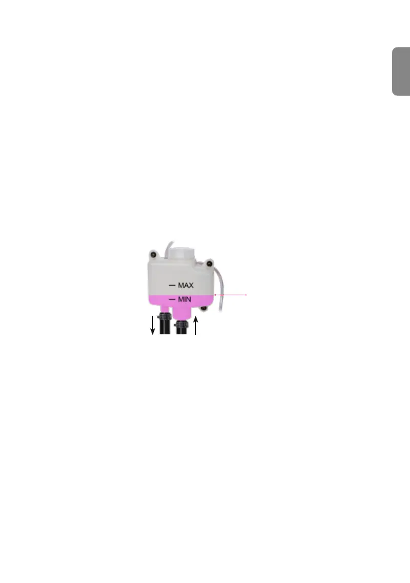 5. Kontrollera vätskenivån i expansionskärlet. Fyll på om nivån sjunkit vid luftning. Vätskenivån