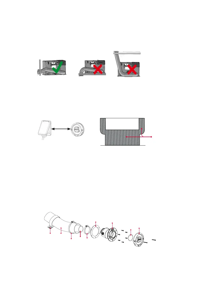 • Damit die Luft ungehindert am Wandkamin vorbeiströmen kann, sollte dieser an einer möglichst
