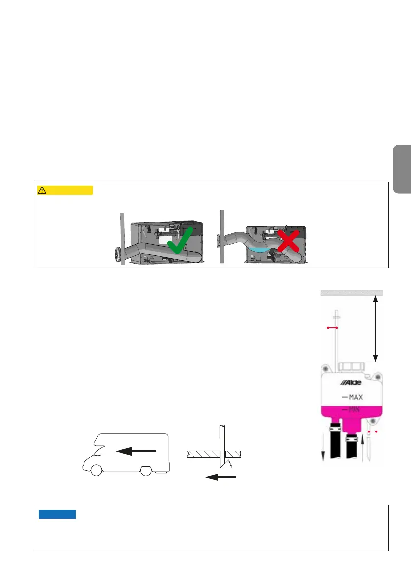 • Der Entlüftungsschlauch (Abb. 10, Punkt 1) wird gerade nach oben verlegt