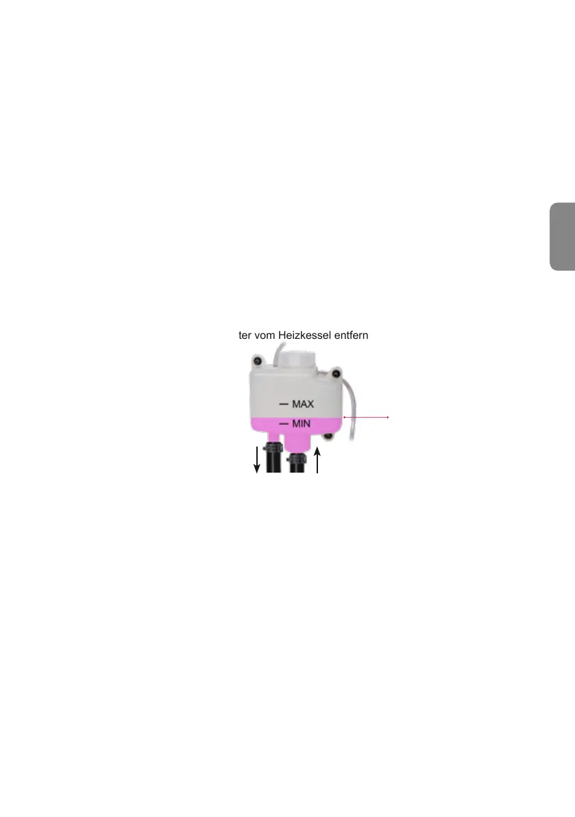 befüllt als auch belüftet. Das Niveau sollte bei kalten Heizungsanlagen etwa 1 cm über der MIN-Markierung