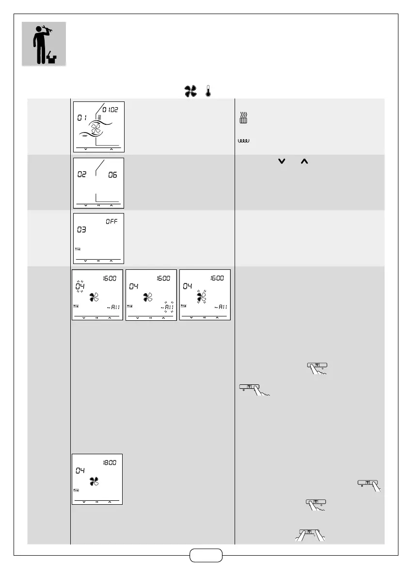 ventilazione in più fasce orarie, tenere premeuto « - »