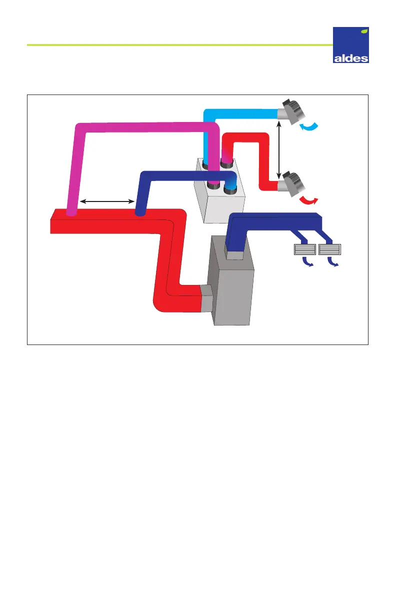 of the exhaust connection. A minimum separation of 40” (1 m) is recommended between