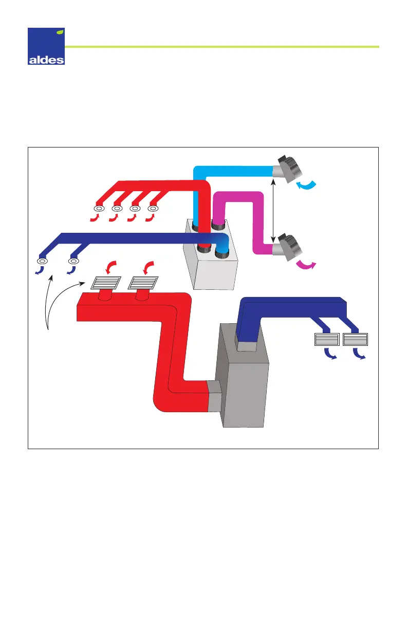 grilles of the AHU and distribute it throughout the house. The HRV/ERV and AHU may operate