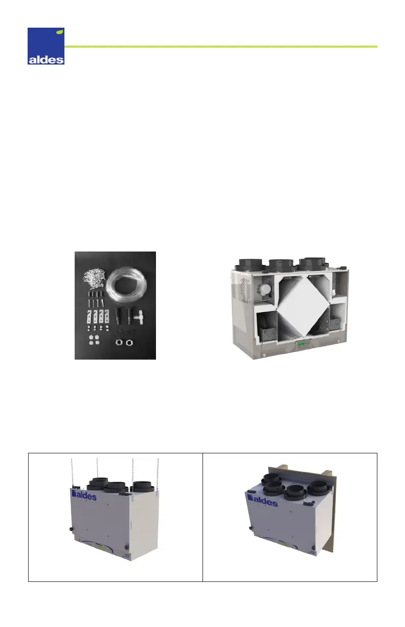 The air exchanger is designed to be suspended from a structure or mounted against a