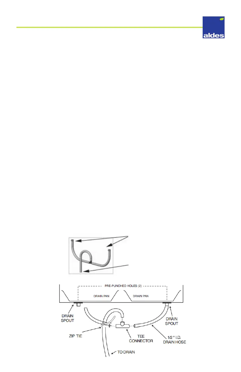 Connect the drain hoses to the buildings drainage system, as shown in the following