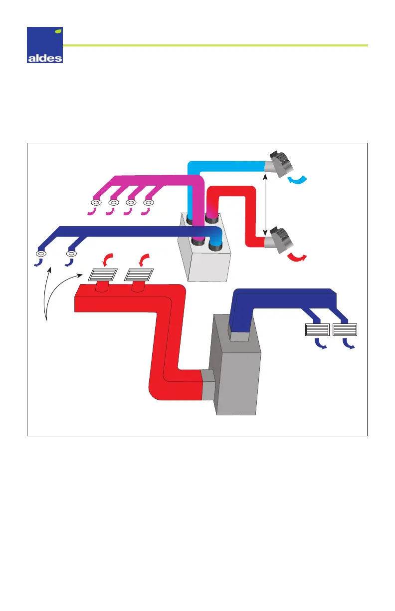 grilles of the AHU and distribute it throughout the house. The HRV/ERV and AHU may operate