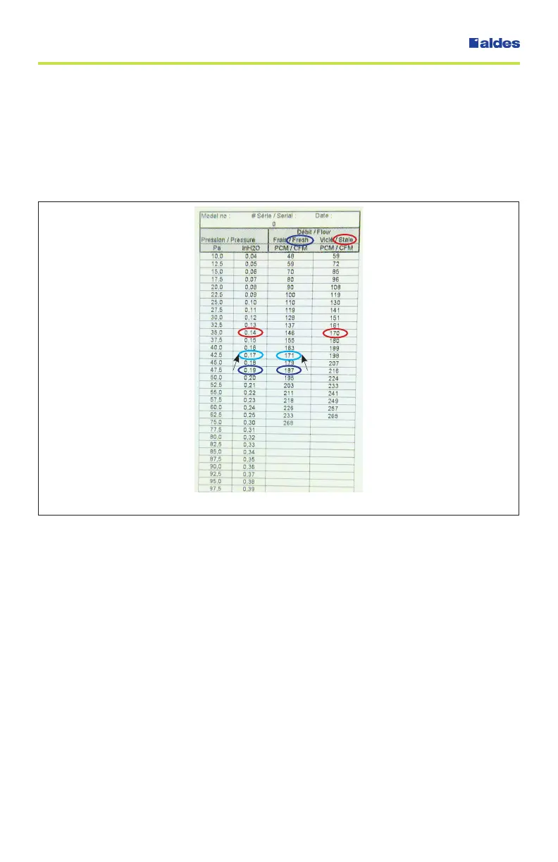 CFM. The reading for the stale air is 0.14 in. w.g., indicating the exhaust airow is 170 CFM.