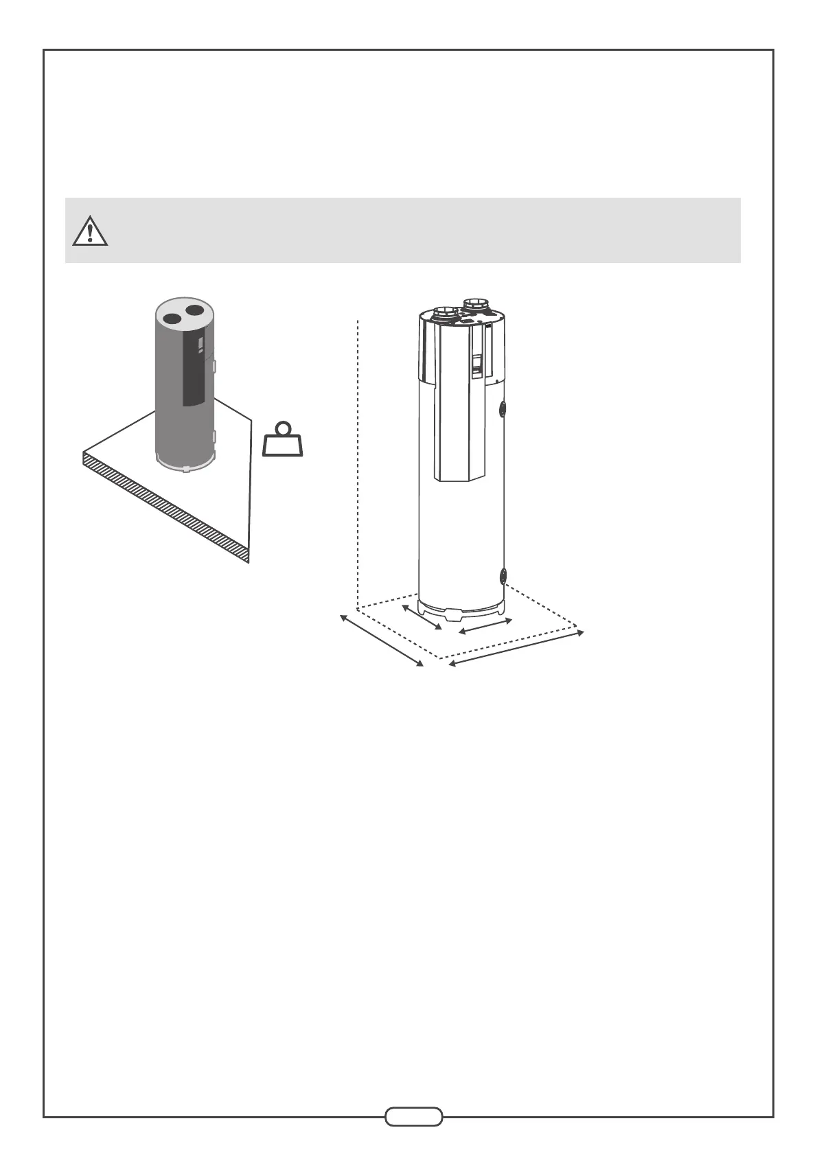 The water heater must be installed on a smooth, horizontal surface (+/- 1°). Otherwise, it must be levelled by