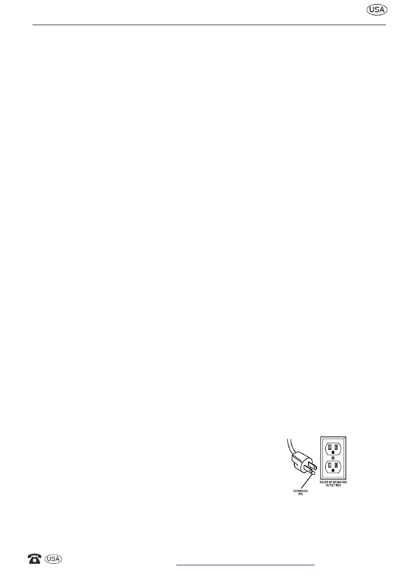 2. NUNCA use enchufes de tres (3) clavijas en cables de extensión o tomas de corriente