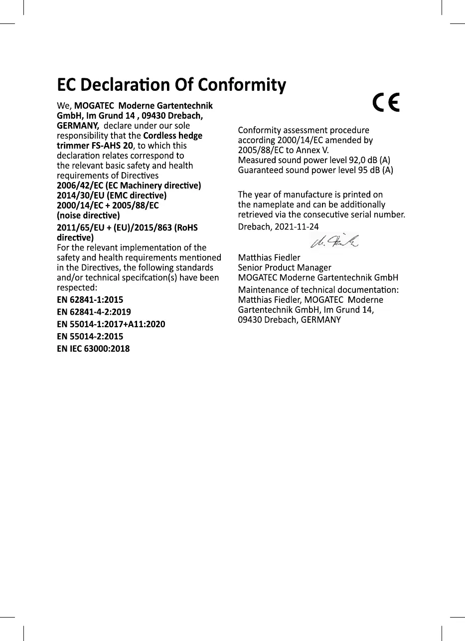 ALDI FERREX FS-AHS 20 - Declaration of Conformity