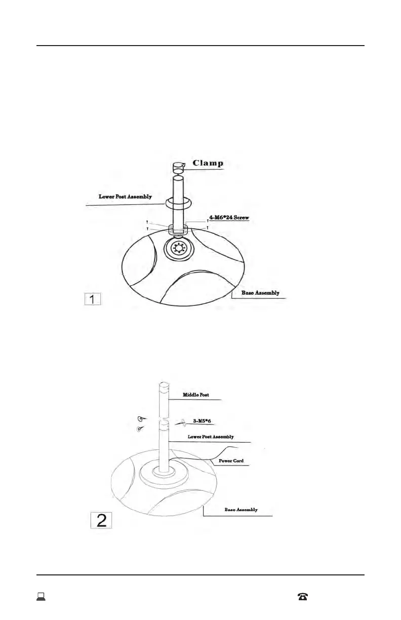 Insert the lower post assembly (11) into the base assembly (16)