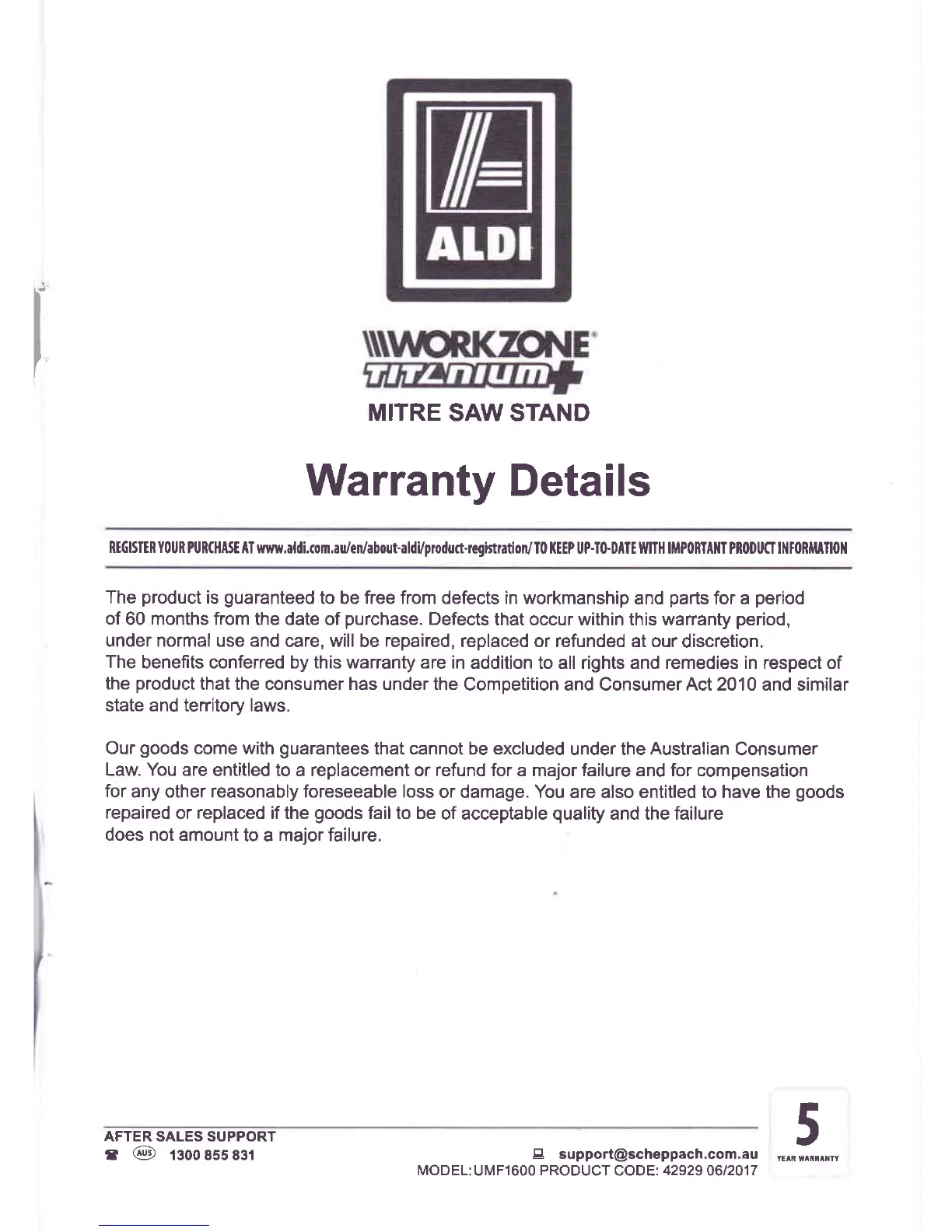 PURCHASt AT www.aldi.con,au/en/about-aldi/produtt-registration/I0