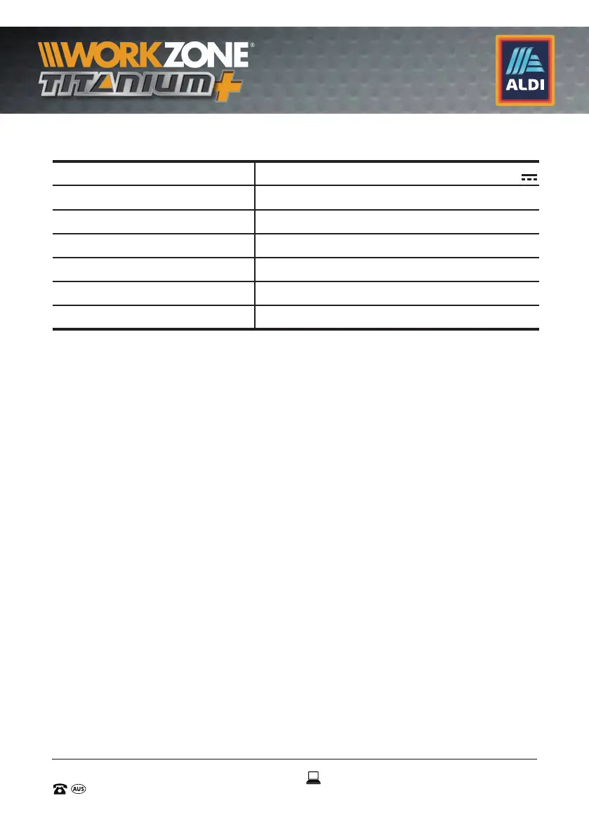 ALDI Workzone Titanium+ Xfinity Li-ION 20V YLW6281D - Technical Specifications