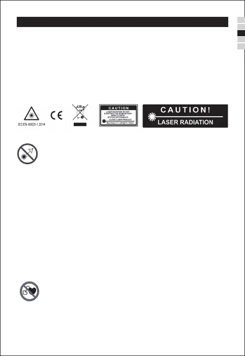 Ne dirigez pas le faisceau laser sur des personnes ou des animaux et ne fixez pas le faisceau laser
