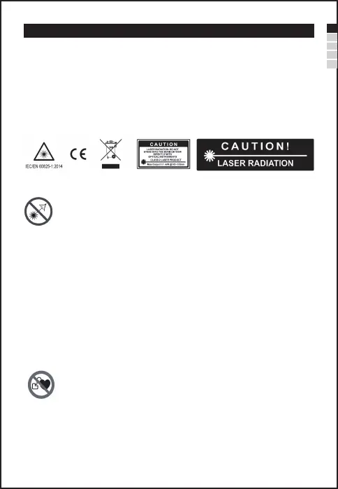 Do not direct laser beam at persons or animals and do not stare into the direct or reflected laser beam