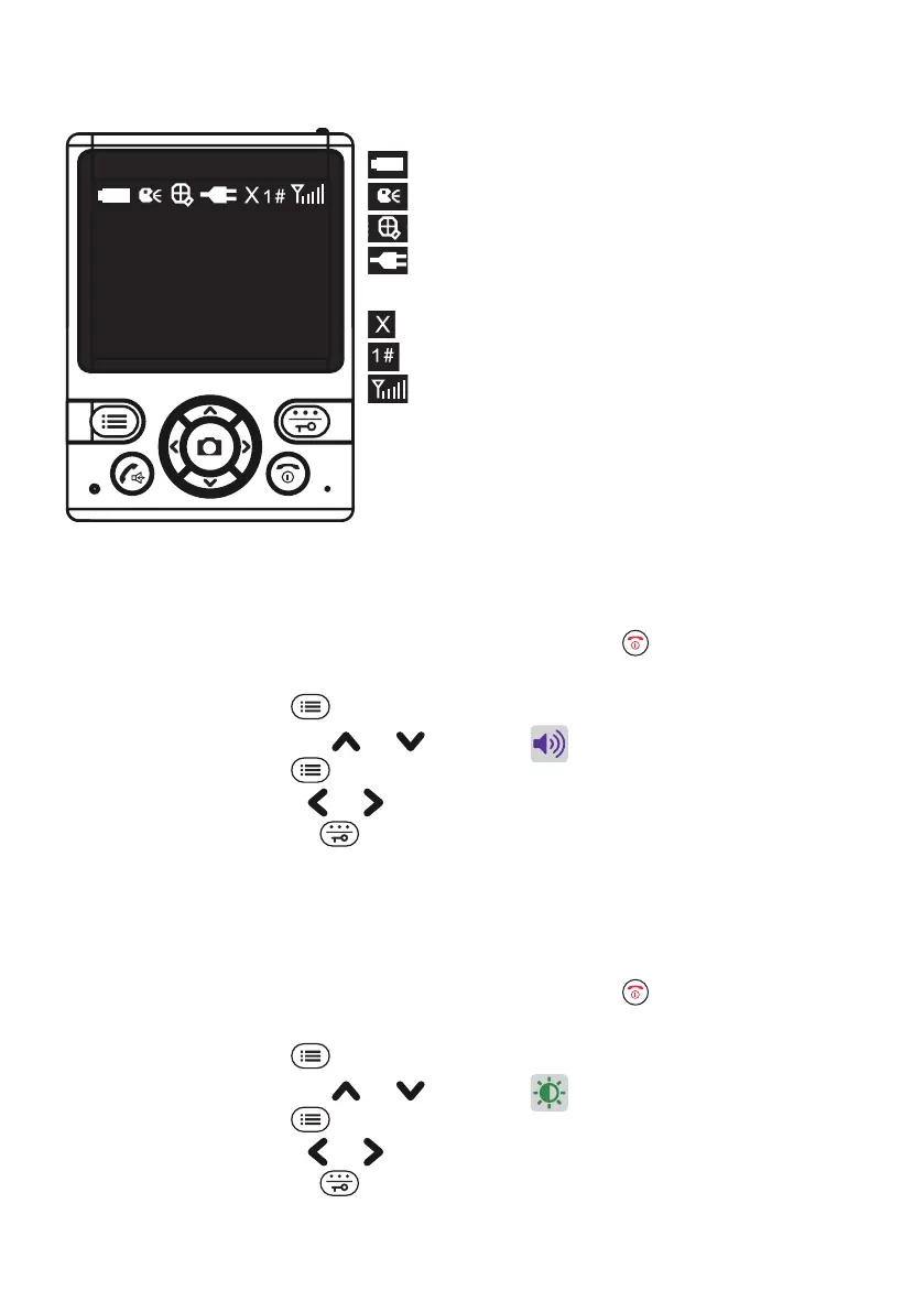 5. stel met de toetsen en het volume in