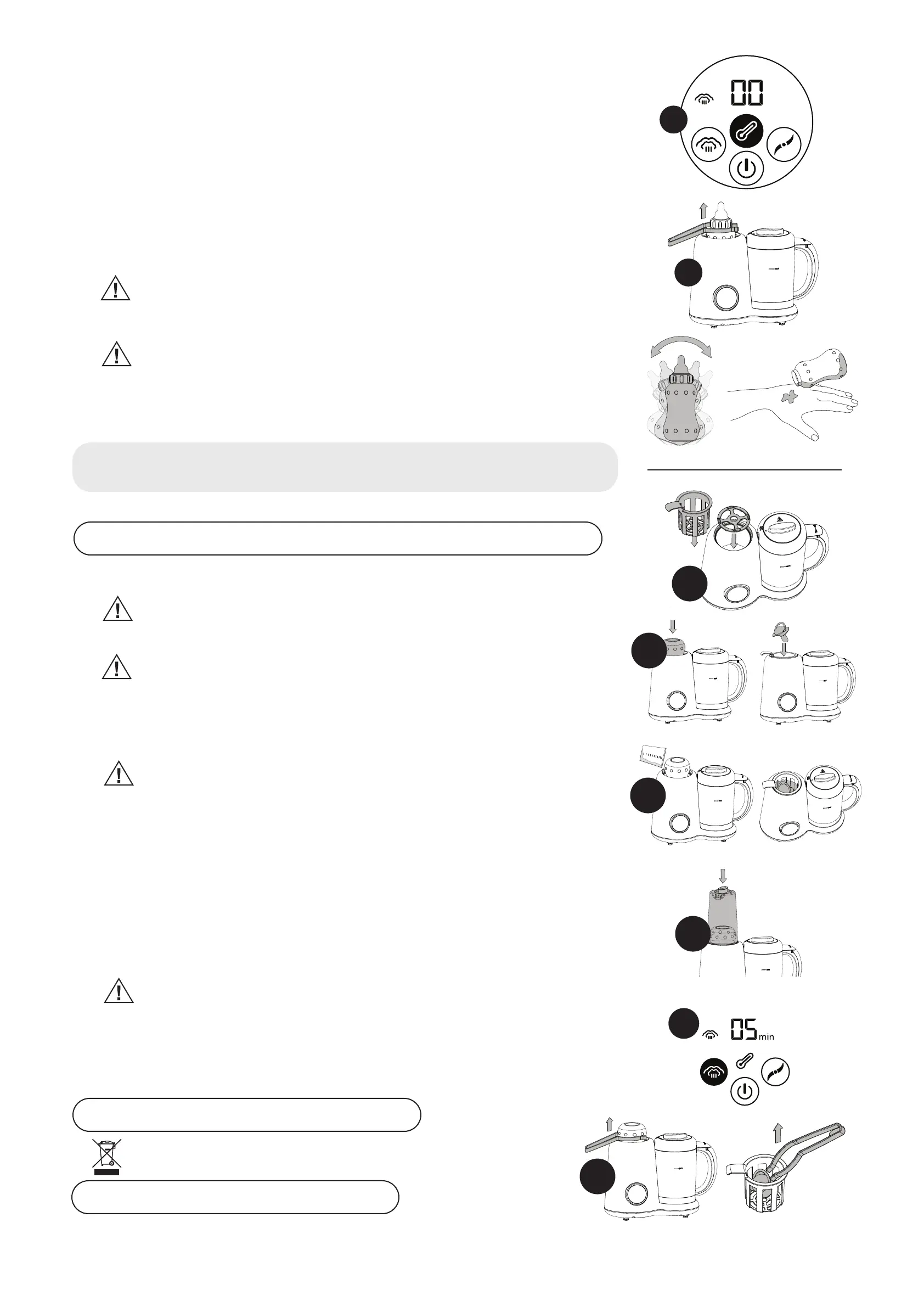 Minuten angepasst werden. Zum Sterilisieren von Flaschen/Tees ist eine 5-minütige Dampfzeit
