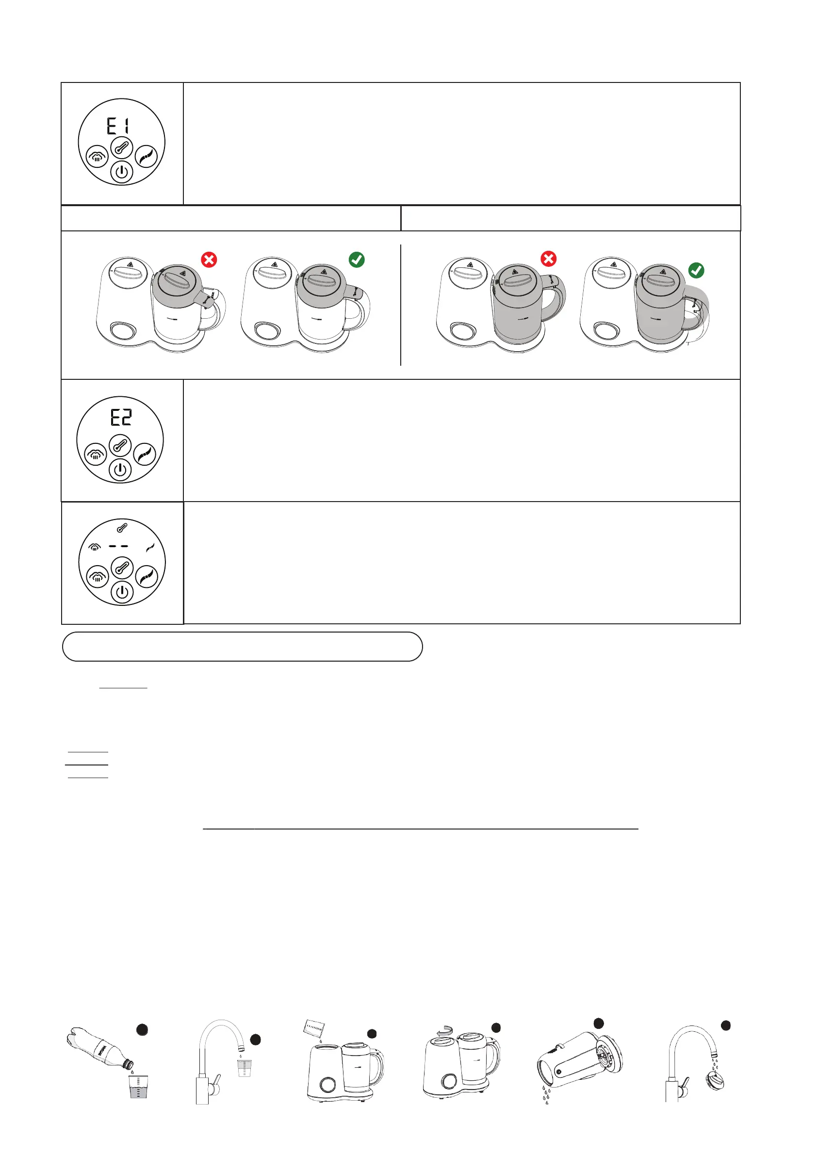 mensaje de advertencia "E1" en el panel de control. En tal caso, las funciones de vapor y