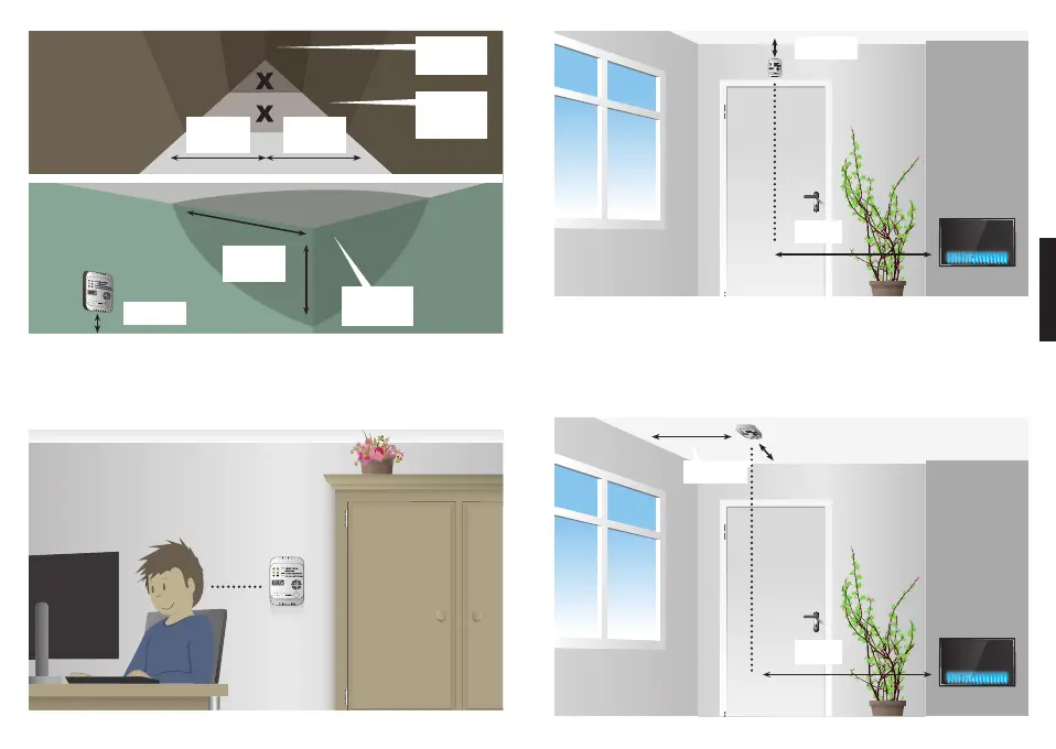 • Installieren Sie den CO-Detektor 60 Zentimeter von umgebenden Wänden und Decken.