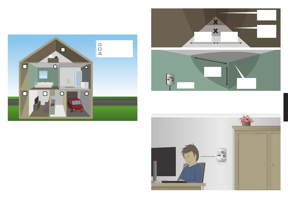 • Install the CO detector 60 centimeters from surrounding walls and ceilings.