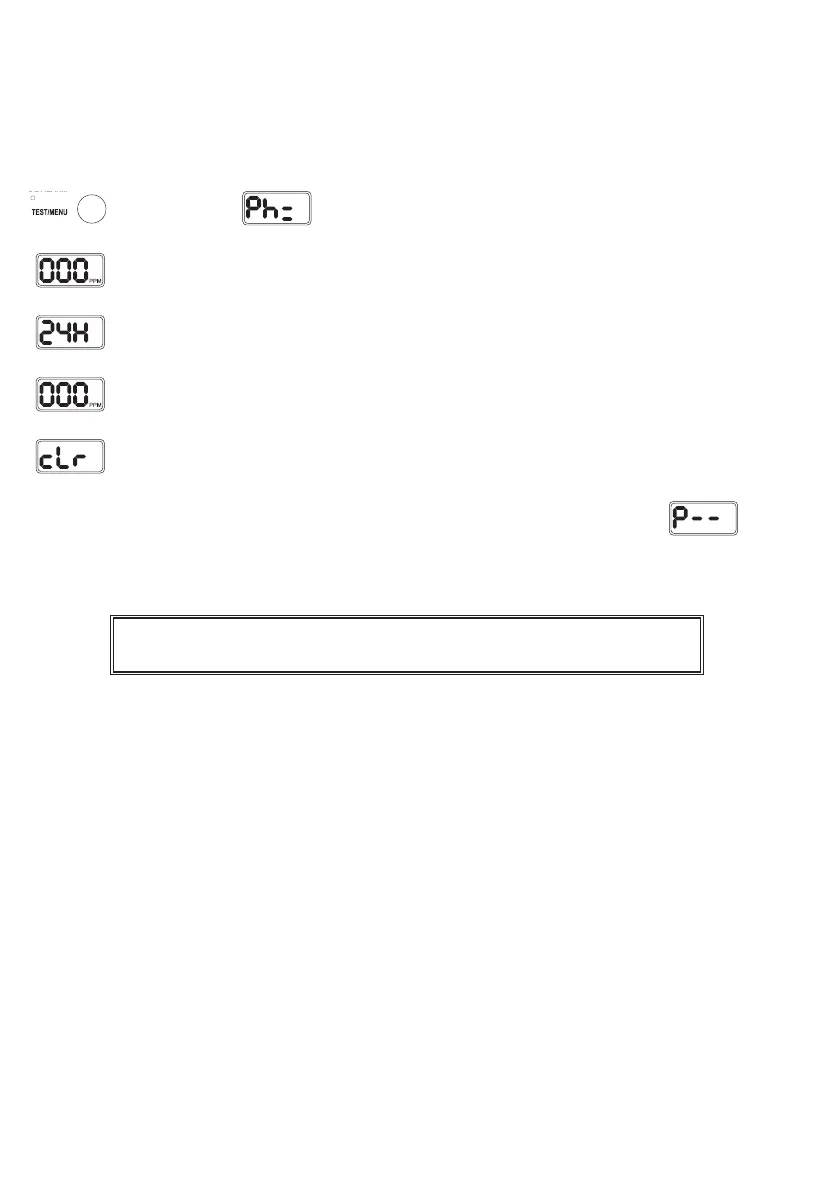 Press and hold the “TEST/MENU” button for 10 seconds until “PH=” appears in the display.