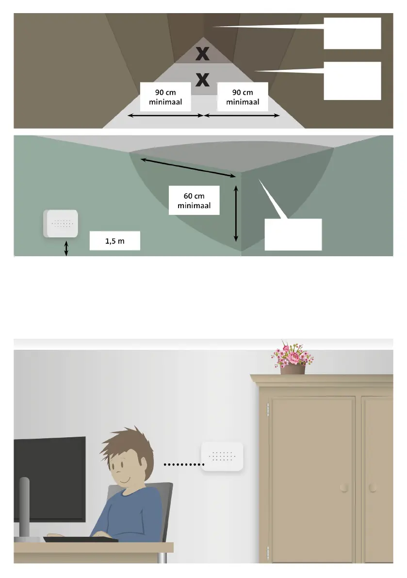 • Installez le détecteur de CO à 60 centimètres des murs et plafonds environnants.