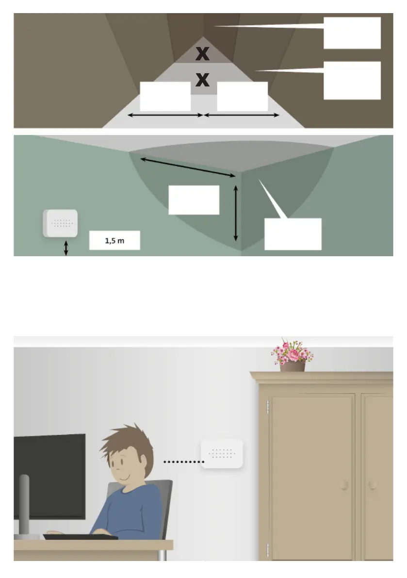 Installez le détecteur de CO dans les pièces sans appareil à combustion de préférence à hauteur de respiration.
