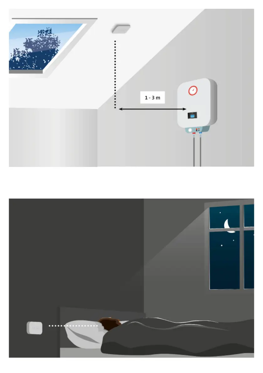 Installez le détecteur de CO dans les chambres à hauteur de respiration pendant le sommeil.