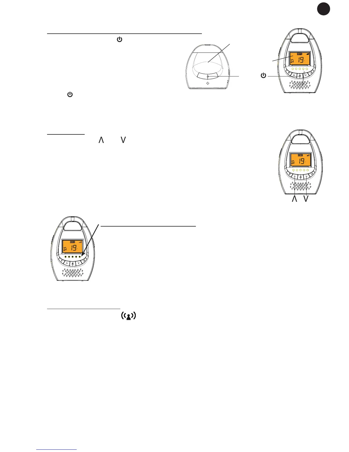 Einschalten: (Eltern-Einheit und Baby-Einheit)