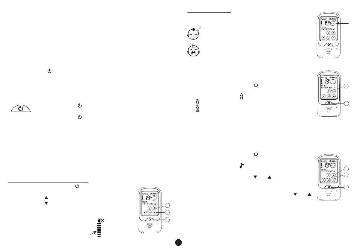 • mit den Tasten und an der Babyeinheit stellen Sie die Lautstärke ein