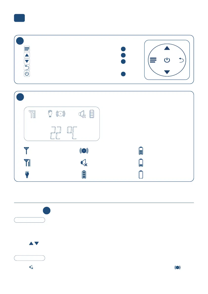 čujete bebu preko roditeljske jedinice. Osetljivost ove funkcije može se podesiti na četiri nivoa pomoću