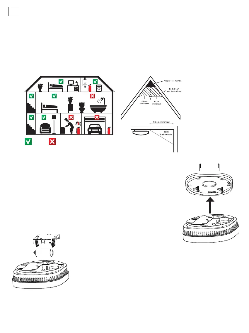 • Plaats minimaal één rookmelder in de omgeving van de slaapkamers. Zorg ervoor dat er een uitgang bereikbaar blijft en kies een vluchtroute.