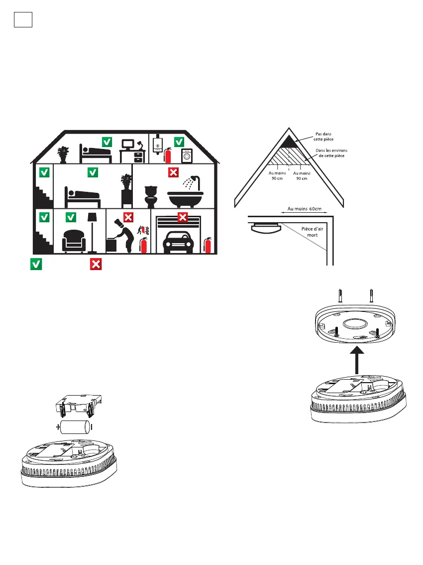 voie d’évacuation. Placez le détecteur à l’endroit où se trouve la voie d’évacuation, de sorte que le détecteur de fumée se déclenche avant qu’il